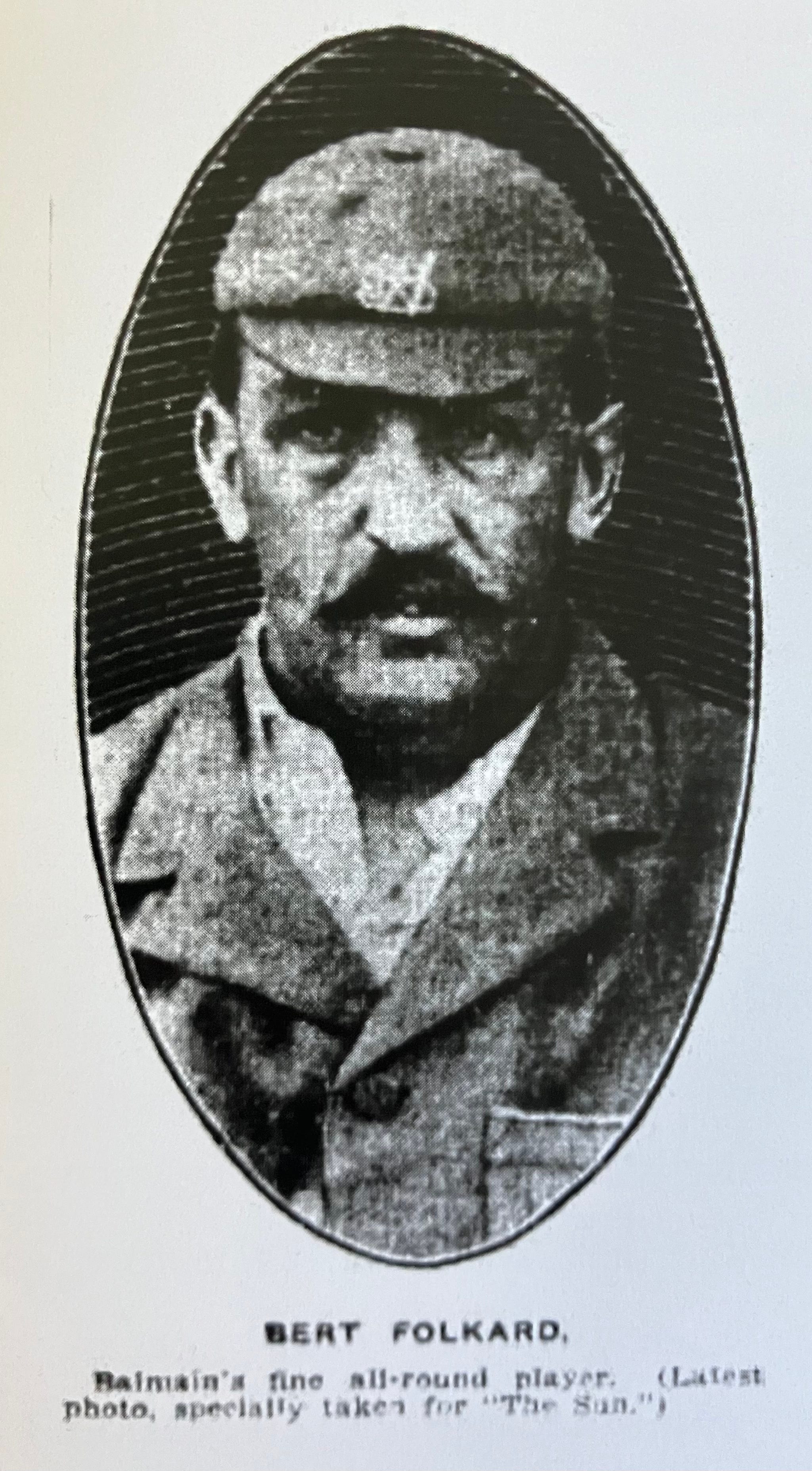 Folkard was thirty-two by the time he began on his successful career for Balmain, preluding twenty-two games for New South Wales. When selected for his country, he had to apply for the asylum’s permission to undertake the 1914-15 tour of South Africa - in the event, sad to say, war got in the way.