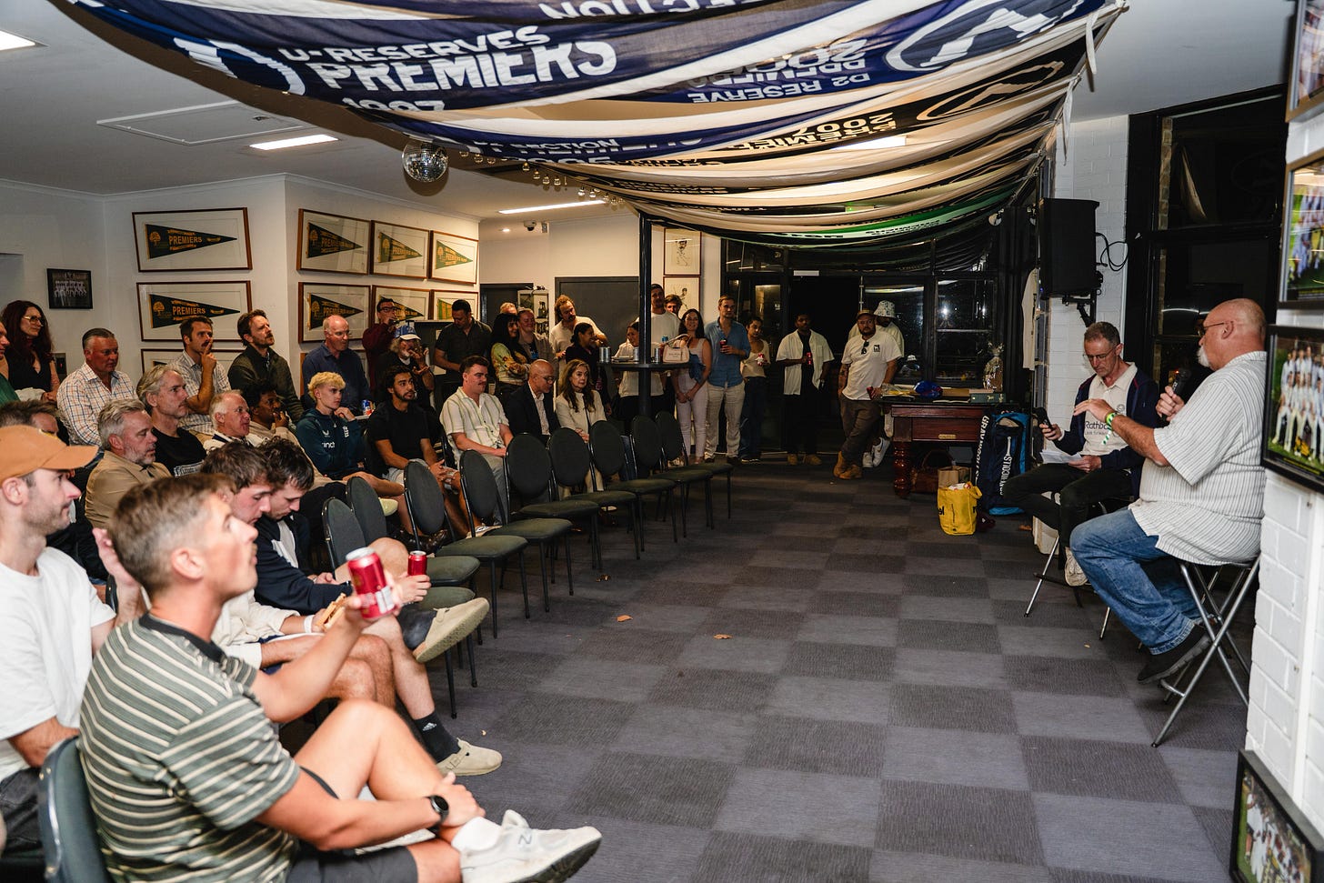 2/ So here we are on stools at the Yarras on Saturday night for our Last Man Standing function. I seem to be trying to get his attention, but he’s in vintage form, with wonderful stories as only he can tell them, and a rapt audience including two teams in the afterglow of winning their semi finals during the day. We’ve had a host of great visitors to the club, from Wasim Akram and Mike Atherton to Chris Rogers and Brad Hodge. Last year there was even Maxy. But, I’m not sure anyone has quite bought into the vibe like Merv. We offered to pick him up and get him home; he said not to worry. I’d chatted to him only a couple of times about the details; he was there on time and endlessly patient with our faffing about. He bought tickets in the draw, and for the meat tray. He brought a bat and some balls to auction. He talked to everyone alike, sober or drunk, jovial or shy, understanding all the types, dealing with them accordingly. He took an interest in the club - every club, as we know, is the same but different. We paid him a fee, but this was really a love job, a model of giving back to cricket - the cricket that he grew up playing.