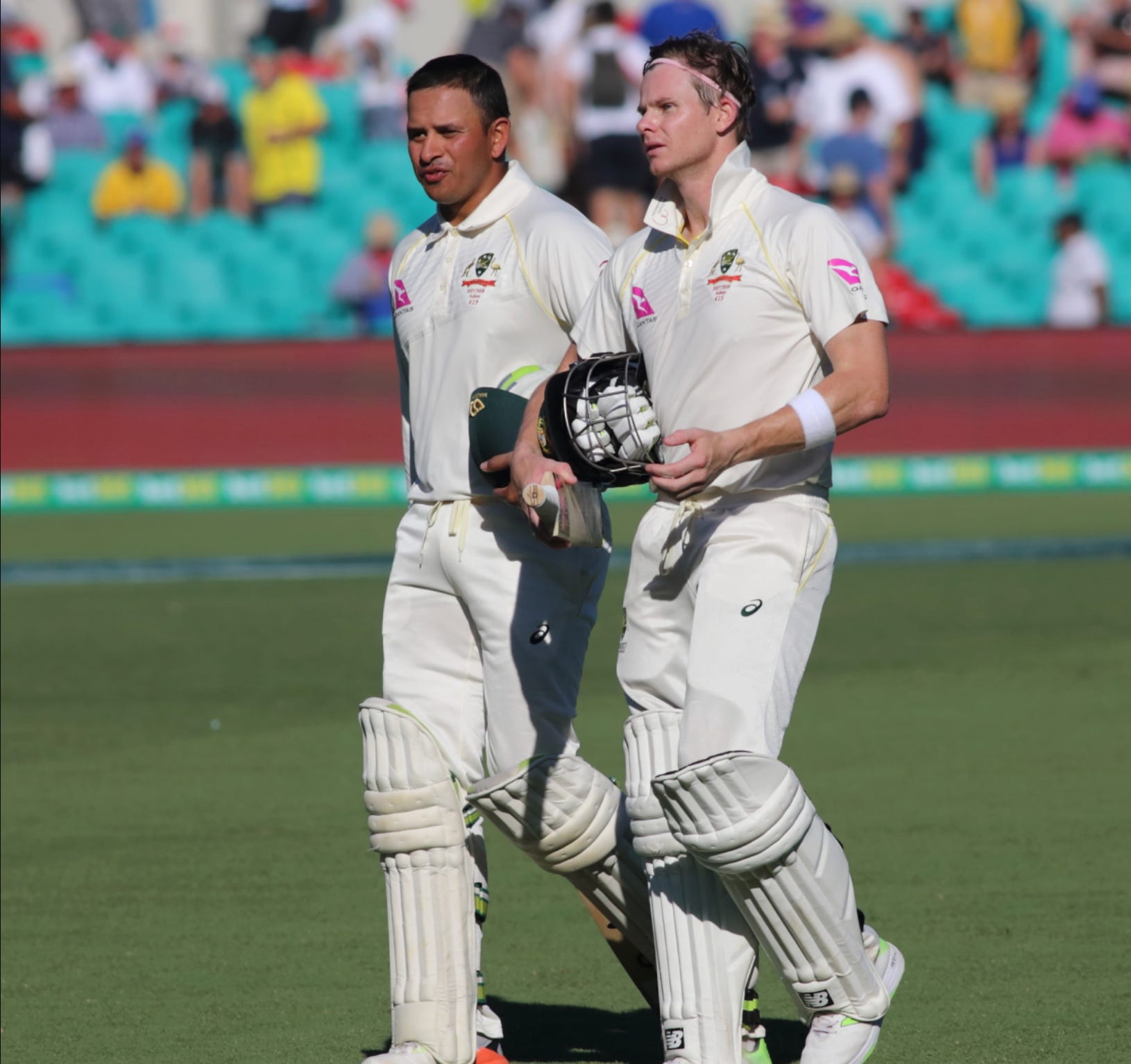 Having slipped out of Australia’s XI, Khawaja had that morning slipped back in, Steve Smith’s dizziness providing an early birthday present. The day had dawned with him in the nets, making the wangers work hard as he intrigued the passers-by before Smith’s absence was confirmed. There had been a case for reinstating Beau Webster, amid temperatures where extra bowling might be handy; in the end, the like-for-like batter-for-batter swap had been preferred.