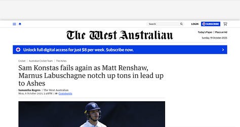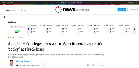 PL: Sam Konstas has the slimmest of chances of playing 1st Test, but there's a disturbing tone to some of this debate