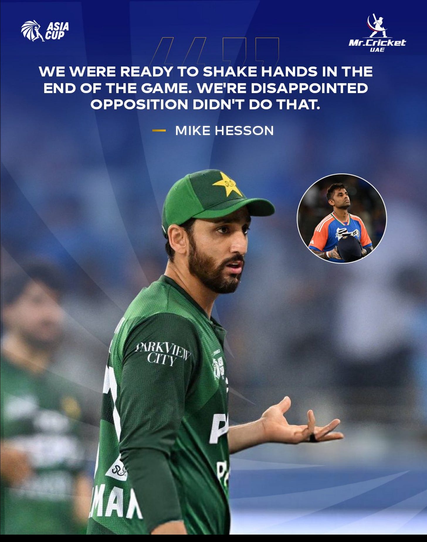 "We sort of went over there to shake hands and they were already going to the changing room," Pakistan coach Mike Hesson said.