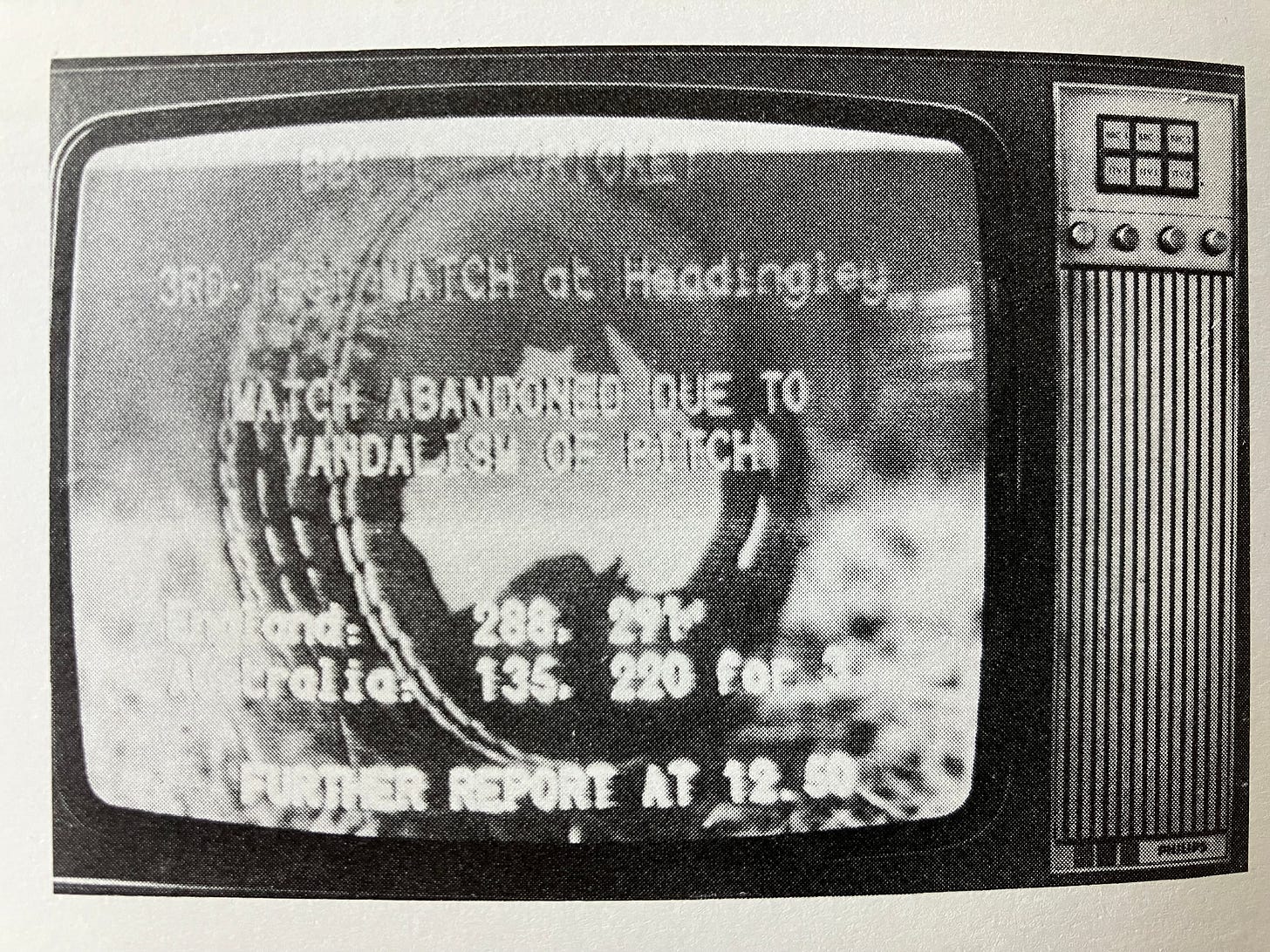 Half a century ago this evening, Australians tuning in to Channel 2 for what shaped as an intriguing final day of a potentially decisive Ashes Test were greeted with something like this. Australia, needing a further 225 to win, were three for 220. Rick McCosker was five runs short of a maiden Test century; Doug Walters was 25. But, on rolling back at covers at 6.45am, Headingley groundsman George Cawthray had found the previously blameless pitch vandalised. A tin of motor oil had been poured into great gouges in the creases at each end. At one end in particular, there was a slick three feet wide for a right-hander on a good length. From this The Times’s John Woodcock inferred that ‘the culprit knew his cricket.’