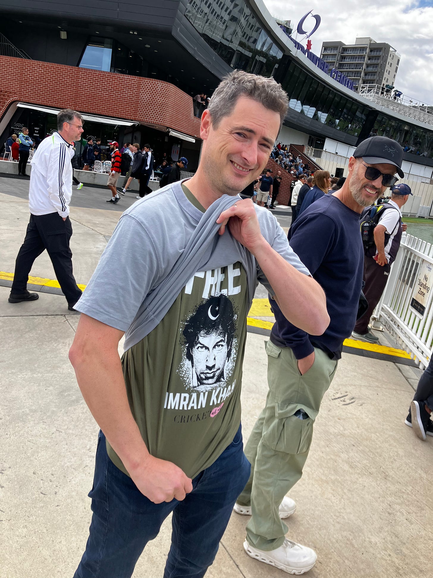Et Al headed to Junction Oval today for the Sheffield Shield final purely in punter capacity, looking forward to a day’s recreational cricket watching with a few mates, sundry Yarras and several subscribers. One of these was Luke Brown, a respected opponent over many years at Parkville United. Looking round for him, Et Al was surprised to learn he had been forbidden entry because of his convergent interests in cricket, human rights and merch - yes, Luke had been stopped at security for wearing Et Al’s Free Imran Khan T-shirt, deemed ‘too political.’
