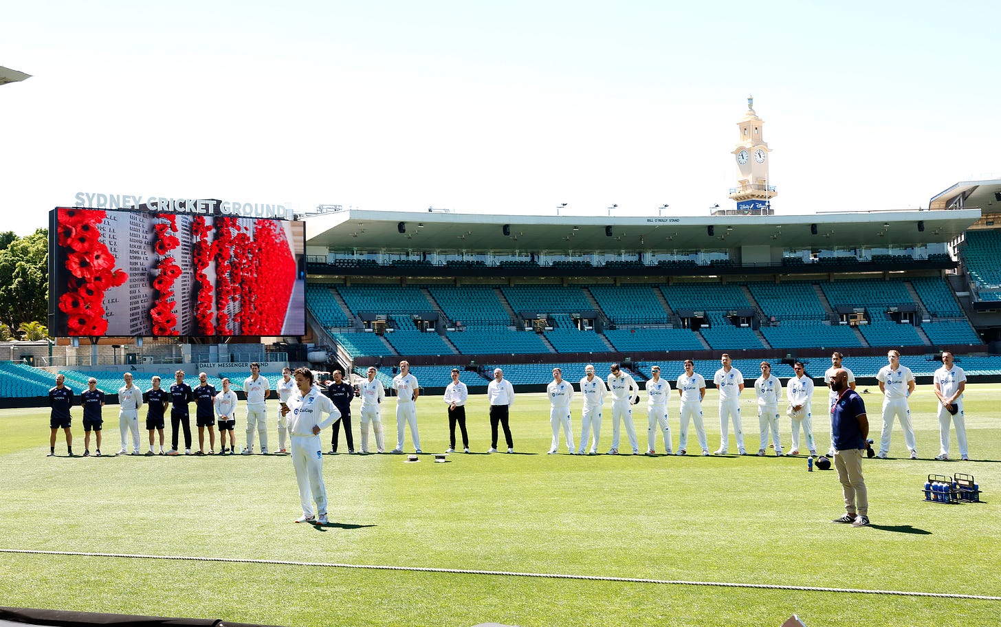 There’s a home-spun warmth to Sheffield Shield cricket. Here is a space free from auditory assaults and corporate choreography. This is the game at its analogue best, a place with space for contemplation, much the way it would around the time of that first conflagration.