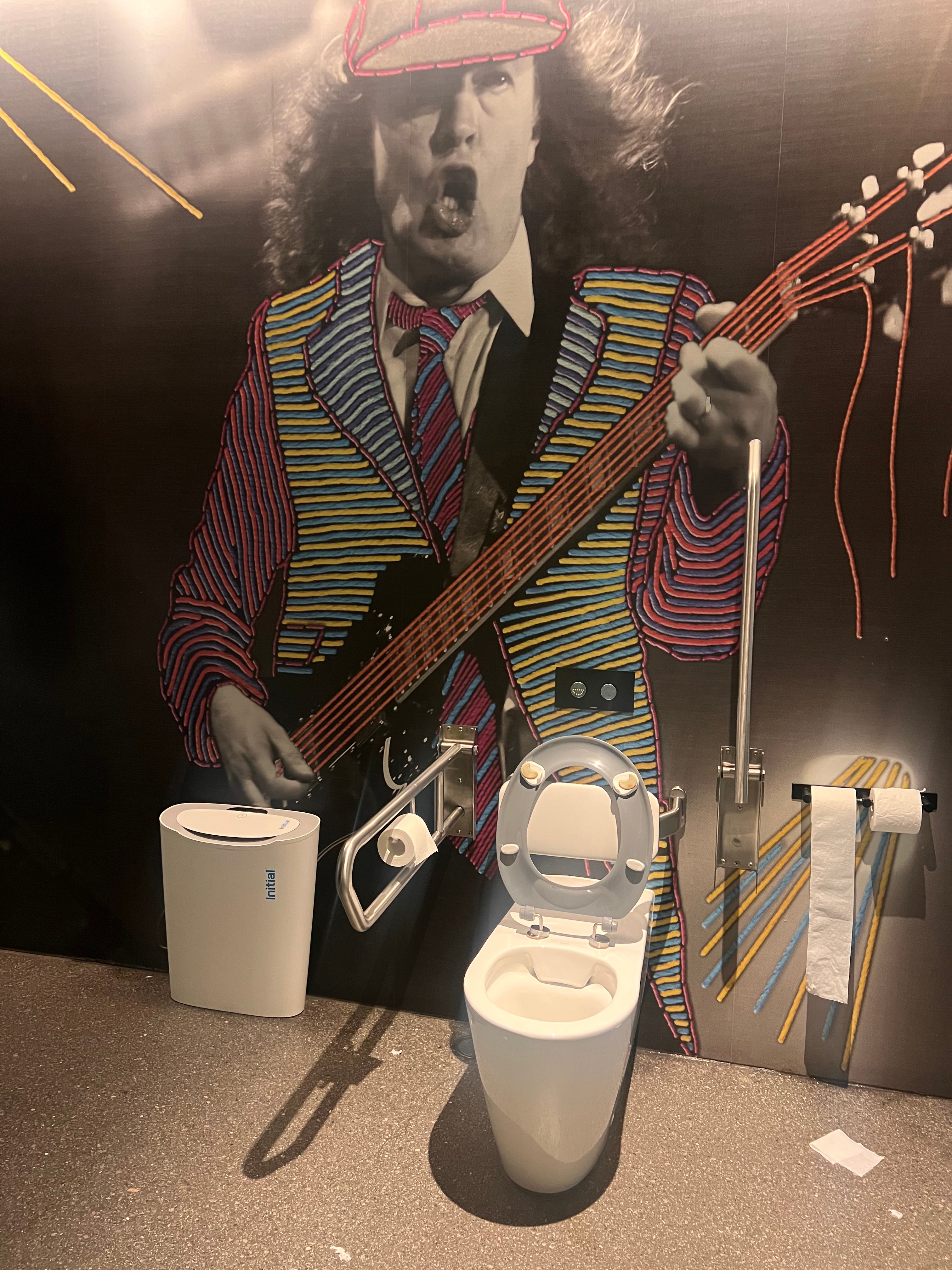 Bumped into Angus Young in the public toilet at the Marrickville Metro this morning and was, needless to say, amused by the random encounter. I mean, seriously, when did we get to that point in life when the Peter Pan of Bogan Punk’s existence would be celebrated in the adult accessible changerooms of a suburban shopping mall? The world is so far down the shitter of late that it’s hard to find anything to celebrate, but the embrace of snot-nosed musicians is one thing that gives me hope.