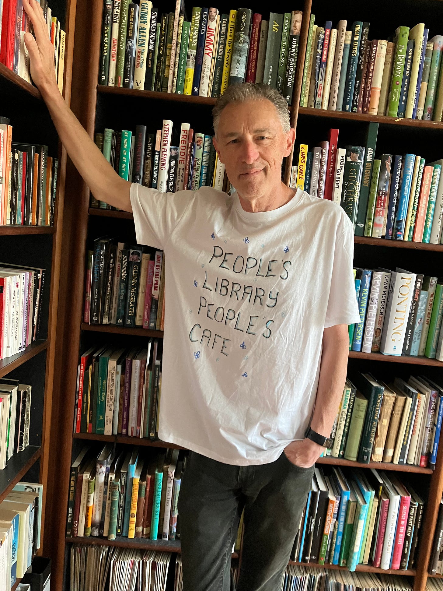 The meeting was hosted by my very old friend Kaz Cooke, who in her tribute to the institution came up with a line I wish I’d thought of and may well borrow: ‘I didn’t go to university. I went to the State Library.’ Sir Redmond, the back of whose statue you can see, would have nodded benificently: that’s exactly the use to which he imagined the library would be put. I was among the speakers, with former collections head Shane Carmody, historian Judith Brett and the YA author Laura Carroll, following a lengthy address by Community and Public Sector Union organiser Jordie Gilmour. The CPSU have been pretty lacklustre in their representations of workers at the State Library during the last decade of turmoil; I’m glad to say they seem on the case now. I was also glad to give a shout out to Michael Togias and his wife Maria, whose incomparable warm and friendly cafe Mr Tulk has been turfed by management in favour of the purveyors of this dreary shite. He’s taken his case to the Ombudsman, and I’m wearing the T-shirt now.
