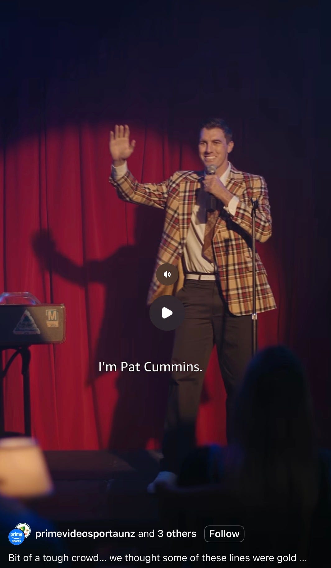 In Pat Cummins' new Prime Video advertisement has the cricketer role-playing as a stand-up comedian, dressed in a plaid jacket and armed with a string of excruciatingly modest one-liners.