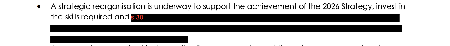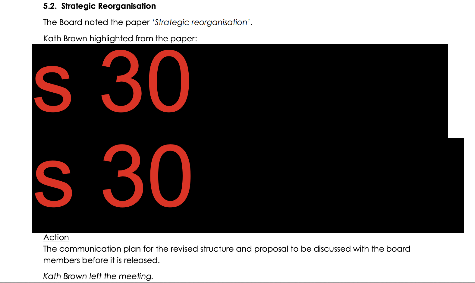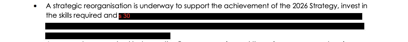 Kath Brown, by the way, is none-too-popular head of ‘people and culture’ in the van of the Strategic Reorganisation Change Proposal, whose aim was this….