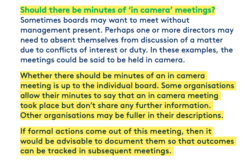 Indeed, it would appear that hardly a meeting of the library board proceeds without being prefaced by an unminuted ‘in camera’ session of half an hour or more. Now, just so we’re clear, ‘in camera’ board proceedings are perfectly allowable in certain circumstances, and minute taking discretionary - so advises the Australian Institute of Company Directors.