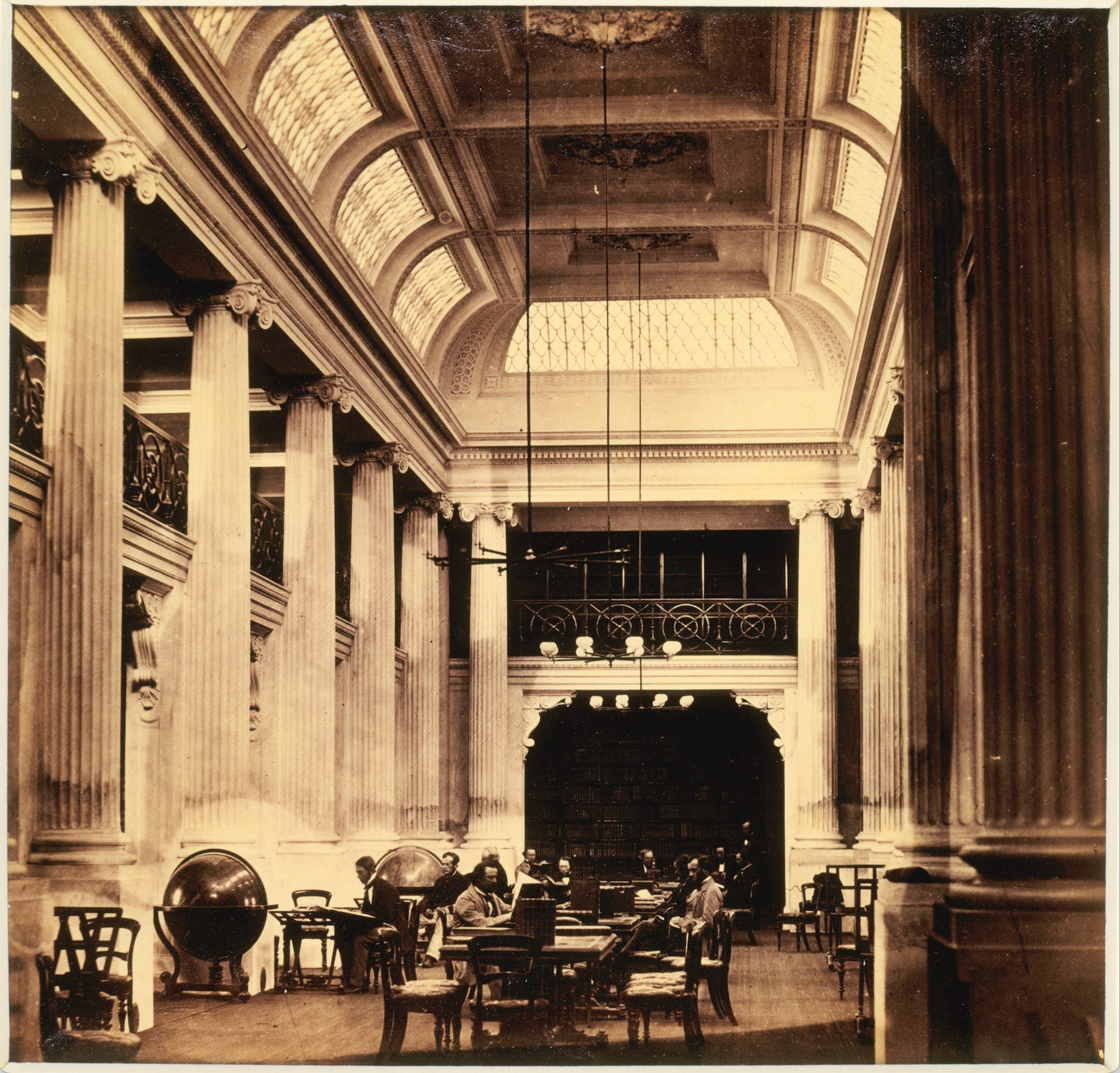 The idea of ‘moving with the times’ is always alluring. But what if the times are not good? What if the times involve knowledge and veracity trading at a worsening discount to noise and ignorance? Then, for a library, founded under an act of parliament to ‘ensure the maintenance, preservation and development of a State collection of library material’, might it not be expedient to lean, at least a little, against the times? Is it not a moment to double down on the integrity of the library’s holdings and the expertise of its handlers rather than fall in with the march of post-literacy and information inundation? How will your digital vanity projects serve the posterity which the library as custodian is entrusted? This, by the way, is not an argument against technology or digitisation per se, which when not vacuously experiential and designed to be useful are hugely valuable. They’re so valuable, in fact, I’ll use them right now to whistle up a favourite photograph of the State Library’s Queen’s Hall, taken in 1859 by Barnett Johnstone.